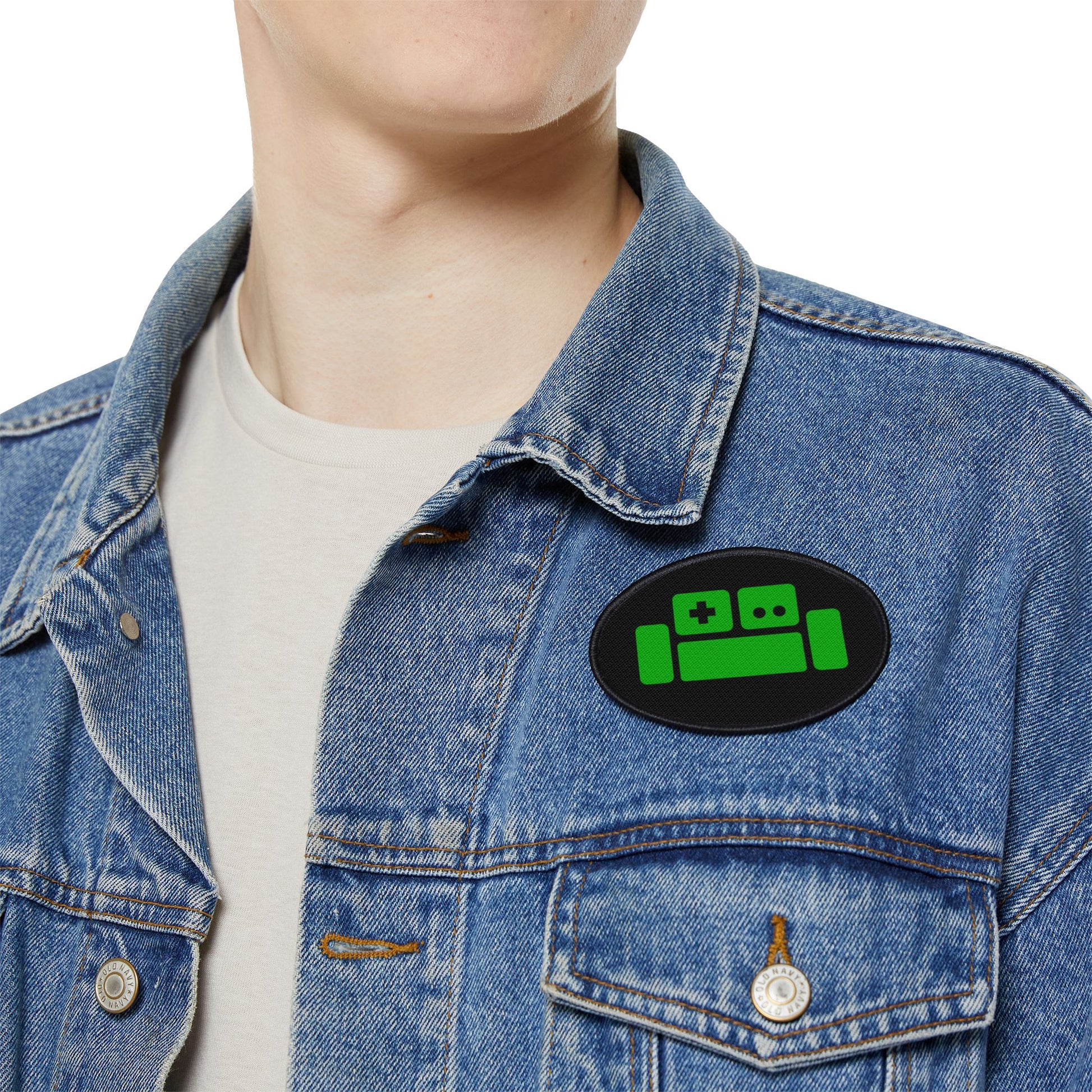 Unique Iron-On Patches featuring the Basement's green couch logo, adding a touch of culture to your clothing and accessories. Perfect for fans of the channel looking to customize their wardrobe with a unique twist. Great for adding a fun element to denim jackets, backpacks, and hats.