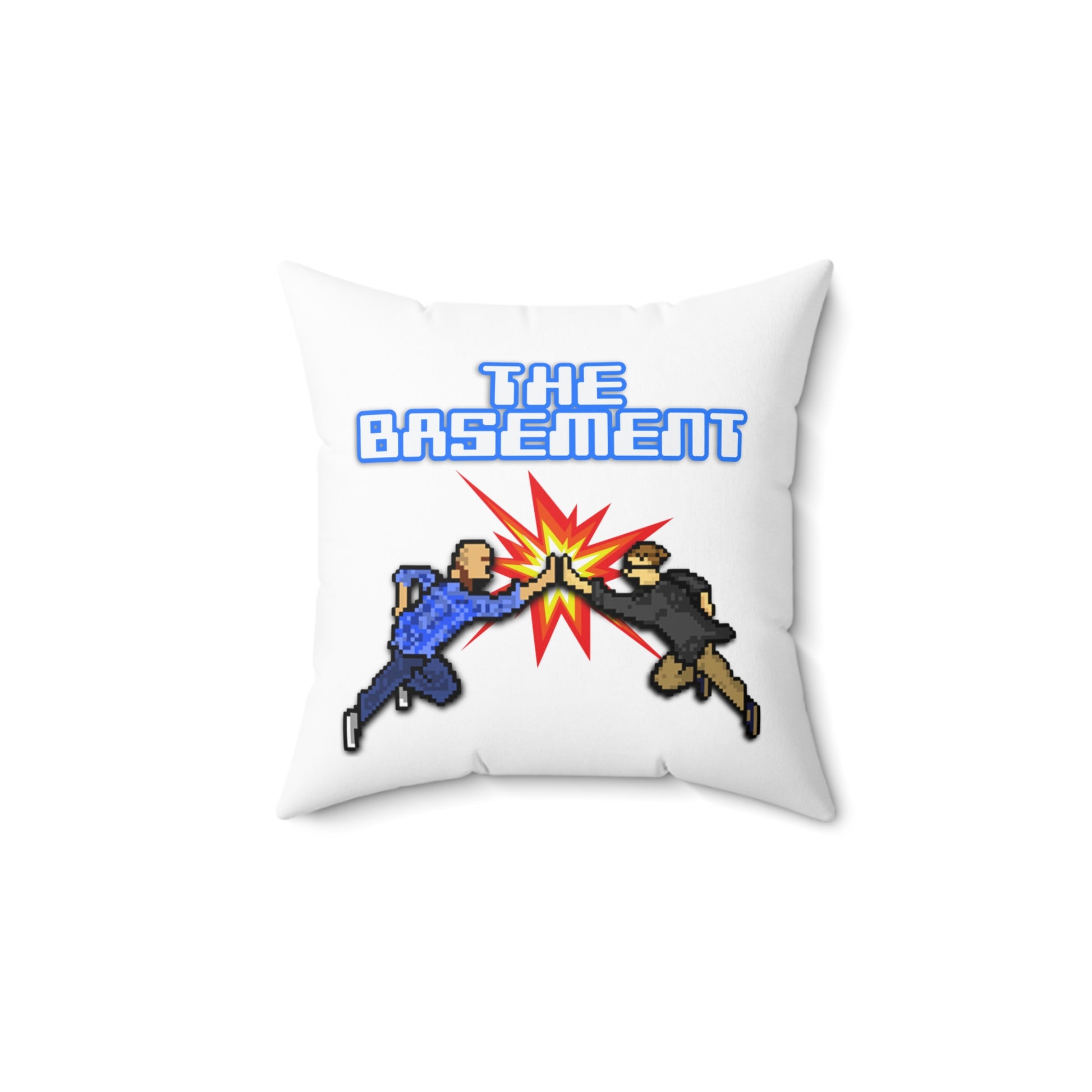 Get cozy in style with This 14" throw pillow features the mischevious GhostCat, and the classic Basement Hi Five!